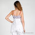 Расклешенная блуза из легкого полупрозрачного материала. Бретельки-косички. V-образный вырез. Отрезная кокетка, по линии шва вставлены завязки. Застегивается на молнию на спине. Трикотажная подкладка.