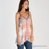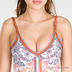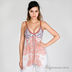 Расклешенная блуза из легкого полупрозрачного материала. Бретельки-косички. V-образный вырез. Отрезная кокетка, по линии шва вставлены завязки. Застегивается на молнию на спине. Трикотажная подкладка.