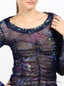 Стильная полупрозрачная блузка не оставит Вас незамеченной на вечеринке. округлый вырез горловины декорирован пайетками. Полочка декорирована оригинальной драпировкой. Длинный прямой рукав.