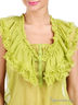 Детали: широкий ворот декорирован многочисленными оборками; заниженная талия на широкой многорядной резинке, низ изделия декорирован баской