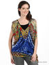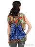 Детали: трикотажный топ с регулирующимися по длине бретелями, цельнокроеный рукав, полочка декорирована стразами, оригинальная драпировка полочки и спинки изделия, низ изделия на манжете, переходящей в ленту, завязывающуюся в бант