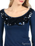 Детали: круглый вырез, длинные рукава, полочка украшена пайетками, снизу резинка