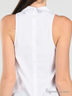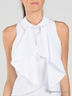 Легкая приталенная блузка без рукавов из эластичного хлопка. Круглая горловина. Левая проймы декорирована широким воланом. Застегивается на молнию на спинке.
