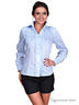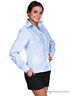 Оригинальная слегка приталенная блузка. Отложной воротник-стойка, длинные рукава с манжетами на пуговице, застегивается на пуговицы. Полочка и манжеты - многослойные рюши.