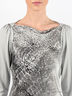 Детали: рукав три четверти, полочка из тонкого атласа декорирована набивным рисунком