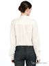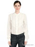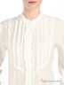 Детали: застежка на пуговицы, обтянутые тканью, полочка декорирована вязаным кружевом и простроченными складками