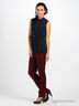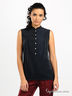 Стильная блузка без рукава с овальной планкой отлично подойдет как для офисного стиля, так и для отдыха. Тонкая шелковистая ткань. Застегивается на пуговицы. Ворот-стоечка. Проймы дополнены шелковистой лентой. Округлый крой низа.