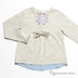 Детали: округлый вырез горловины, застежка на пуговицы, длинный рукав, декоративная сборка и бантик, контрастные вставки