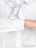 Детали: отложной ворот-стойка, застежка на пуговицы, длинный рукав, манжеты на пуговицах, вытачки, полочка декорирована