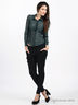 Детали: застежка на пуговицы, отложной воротник, длинный прямой рукав с манжетой на двух пуговицах