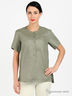 Детали: округлый вырез горловины, короткий рукав, застежка на пуговицы на полочке, два нагрудных кармана