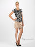 Легкая блуза из атласной ткани с коротким рукавом-фонариком. Приталенный крой. Планка-застежка с потайными пуговицами. Ворот и манжеты посажены на резинку.