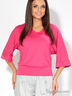 Детали: округлый вырез горловины, широкий прямой рукав, низ изделия на трикотажной манжете