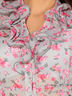 Детали: полочка декорирована воланами, короткий рукав-фонарик, застежка на пуговицы