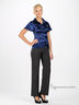 Легкая блуза из атласной ткани с коротким рукавом-бабочкой. Приталенный крой. Отложной воротник. Планка-застежка с потайными пуговицами.