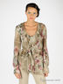 Блузка из шифона с длинными рукавами. Горловина украшена оборками. Края рукавов посажены на резинки. Завязывается на груди.