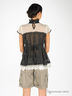 Легкая полупрозрачная блузка из шифона. Воротник стойка, застегивающийся на пуговицы сзади. Сетчатая вставка по верху изделия. Шелковистая эластичная подкладка.
