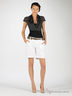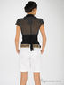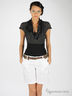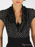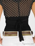 Приталенная отрезная блузка. Легкий полупрозрачный лиф с глубоким вырезом. Низ трикотажный с поясом, завязывающимся сзади. По боковому шву молния.