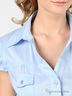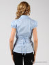 Детали: отложной воротник, застежка на пуговицы, короткий рукав-фонарик, пояс на многорядной резинке, два кармана