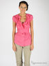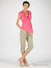 Приталенная блузка из легкого хлопка с перфорацией. Глубокий вырез, украшенный воланами. Застегивается на пуговицы спереди. Подвязывается тонким поясом.