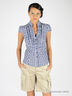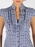Приталенная хлопковая блузка. Воротник стойка. Глубокий вырез. Застегивается спереди на пуговицы.