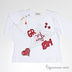 Эффектная блузка-футболка с длинным рукавом, украшенная декоративными аппликациями, нашивками, шнурочками и паетками. По шву декоративная нашивка из присборенной ткани.