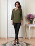 Блузка из текстильной ткани с эластаном ,прямого силуэта.Застежка сбоку на пуговки с отлетным элементом по горловине.Рукав втачной 3/4на манжете.По спинке кокетка.Длина ассиметричная.Модель на фото 168 см.