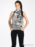 Блузка без рукавов прямого кроя. Воротник-стойка завязывается на бант и переходит в разрез на спине. Снизу блуза присборена многорядной резинкой.