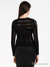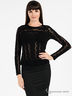 Детали: округлый вырез горловины декорирован трикотажным бантом, длинный прямой рукав