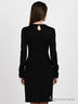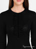Детали: округлый вырез горловины, застежка на пуговицу, длинный прямой рукав и полочка декорированы рюшами с бархатистыми лентами