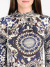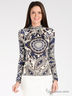 Детали: ворот-стойка с застежкой на пуговицы на спине, полочка присборена в складки, длинный рукав