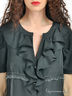 Детали: оригинальный вырез горловины, короткие рукава, застегивается на пуговицы, украшена воланами и кружевом