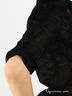 Элегантная блузка из полупрозрачной ткани с цветочным узором. Рукав 3/4, с хлястиком. Отложной воротник. Планка-застежка на пуговицах. Два передних нагрудных кармана, застегиваются на пуговицу. В дополнение к изделию идет неширокий поясок.