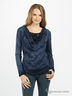 Оригинальная блузка из тонкой трикотажной ткани, прямого кроя. Низ полочки выполнен из тонкой гипюровой ткани. Верх с округлым вырезом горловины с напуском декорирован эффектом винтажа. Длинный прямой рукав декорирован вышивкой в виде логотипа бренда.
