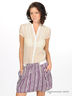 Полупрозрачная приталенная блузка из приятного на ощупь шифона. Воротник стойка. Короткие рукава-фонарики с манжетами на пуговицах. Застегивается спереди на пуговицы.