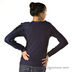 Красивая женская блузка Bambolita, выполнена из трикотажа различной плотности. Основной материал - тонкий трикотаж, низ блузки окантован широкой резинкой, что обеспечивает свободную посадку. Часть полочки и левый рукав выполнены нежной тонкой ажурной вязкой, декорированы нежными рюшами. Округлый вырез обработан широкой резинкой, внутри резинки вдета узкая трикотажная лента, которая позволяет регулировать ширину выреза.