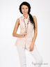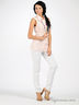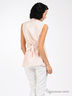 Легкая приталенная блузка без рукавов. Отложной воротник с округлыми краями. Застегивается на планку с пуговицами. Низ изделия украшен перфорацией.
