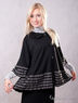 Черный кардиган из мягкой вискозы дополнит любой образ. Кардиган расклешен книзу. Низ изделия и рукавов выполнен из необычной ткани с оборками.