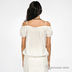 Женственная легкая блузка в деревенском стиле с открытыми плечами. Сделана из тонкой струящейся ткани и отделана декоративной кружевной тесьмой Регулируемые бретели. Низ изделия и край рукава посажен на резинку.