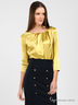 Потрясающий блузон слегка расклешенного силуэта выполнен из атласного материала. Округлый вырез горловины, длинный рукав. Полочка декорирована складками. Отличный вариант для создания праздничного образа.