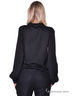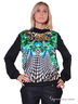 Стильный блузон с длинным рукавом и оригинальным вырезом горловины. Широкие рукава посажены на манжеты. Изделие украшено рисунком и стразами. Будьте стильной и женственной.