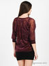 Эффектный блузон из тонкого, полупрозрачного материла с флоковым напылением. Округлый вырез горловины. Укороченные рукава "летучая мышь" с манжетами. Фигурная линия подола. Стильный вариант для торжественных случаев.