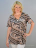 Воздушный блузон с коротким резным рукавом и v-образным вырезом горловины. Изделие выполнено из приятного на ощупь материала, свободный силуэт. Полочка украшена перламутровой пуговицей. Оригинальный принт "пашмина". Данный предмет одежды добавит легкости и нежности в Ваш неповторимый стиль!