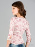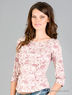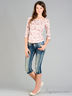 Легкий блузон приталенного кроя. Выполнен из гладкого, легкого материала. Округлый вырез, рукава 3/4, спереди застегивается на пуговицы.