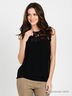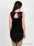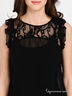 Великолепный блузон оригинального кроя из креп-жоржета с застежкой на пуговицу сзади. Верх изделия дополнен гипюровой вставкой, проймы оборками. Отличный вариант для торжественных случаев.