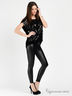 Эффектный блузон свободного покроя. Круглый вырез горловины. Полочка выполнена из сетки с нашитыми вертикальными рядами пайеток. Спинка выполнена из бархатистой ткани. Спинка отрезная по линии талии. Спереди подол дополнен полосой бархатистой ткани.