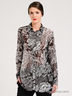 Оригинальный блузон с длинным рукавам и отложным воротом. Застегивается на пуговицы, декорирована контрастным принтом. Отличный вариант для создания повседневного образа.