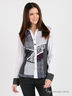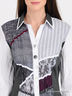 Оригинальный блузон с рубашечным воротом застегивается на пуговицы. Изделие украшено разнообразными по фактуре тканевыми вставками. Будьте стильной и женственной.