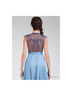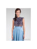 Стильный блузон из шелковой ткани с рисунком. Застегивается на пуговицы, полочка декорирована жабо. Отличный вариант для прогулок летом.