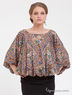 Легкая блуза свободного силуэта из тонкой ткани. Широкий округлый вырез горловины. Укороченные свободные рукава-реглан с манжетами.